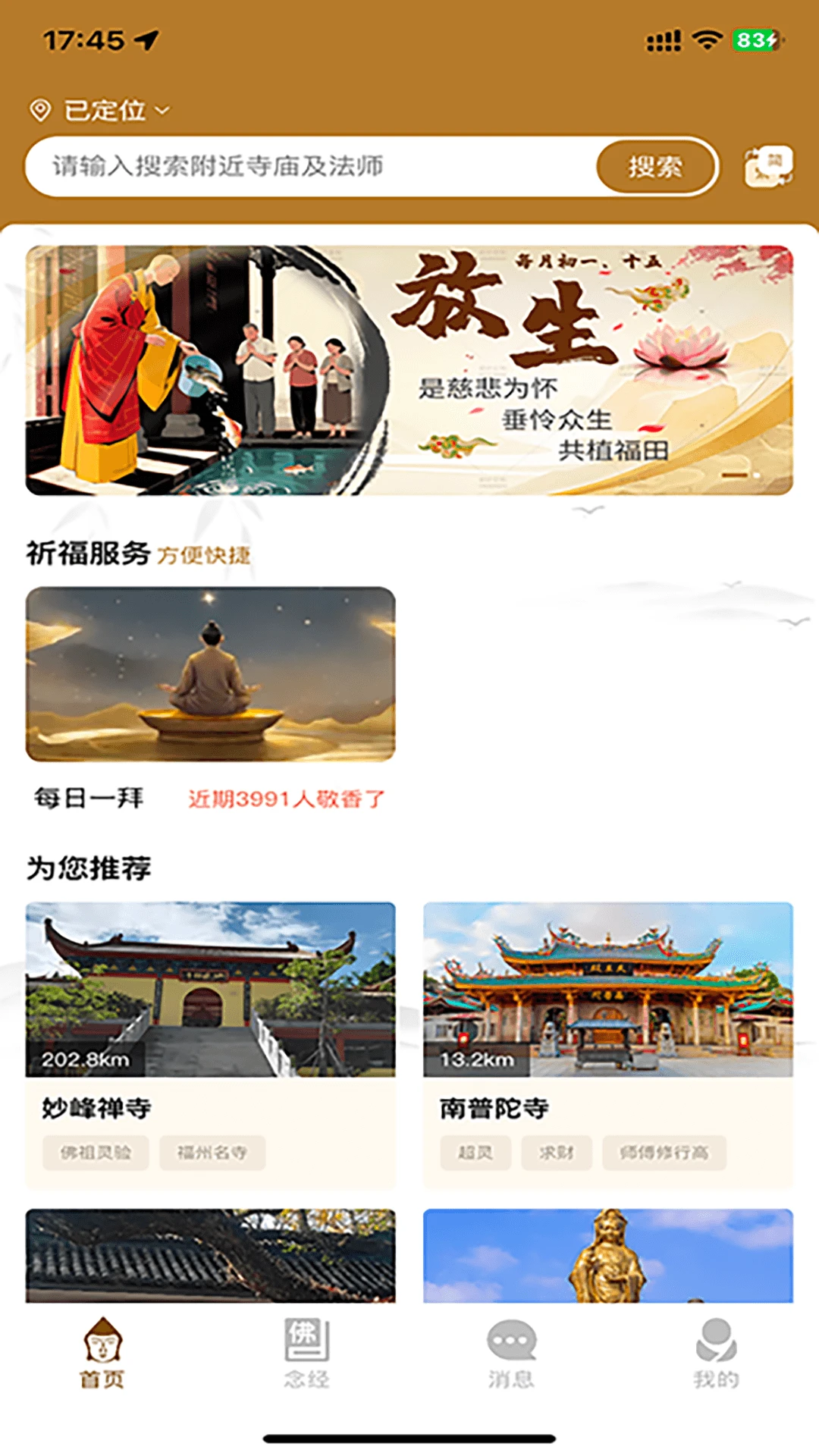 每日修行计划:提供"每日一拜"等固定修行项目,帮助用户养成规律修行习惯