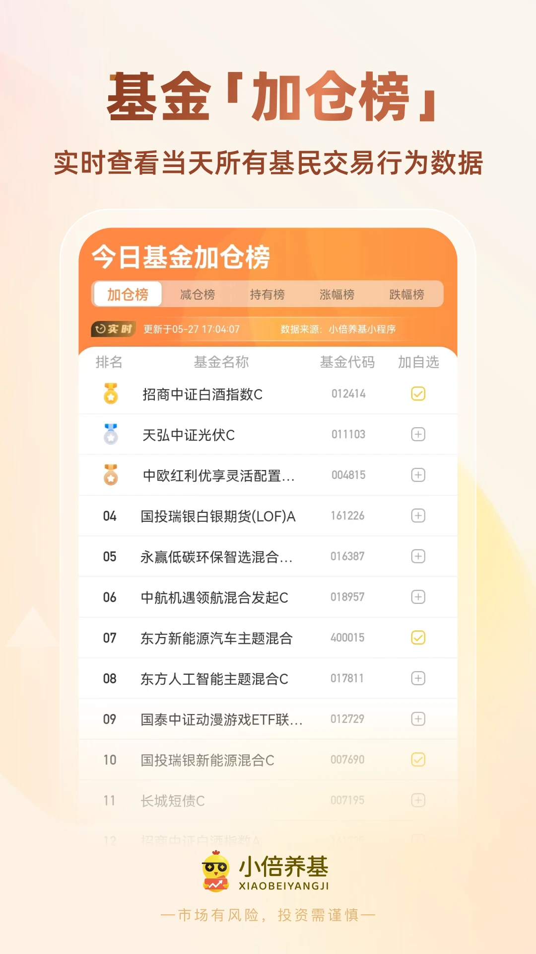 加仓减仓榜单:基于大数据分析,实时生成当日基民操作热榜,辅助判断市场情绪。