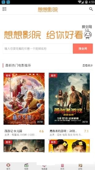 海量高清影视尽在《想想影院》!这款软件不仅能为你提供全新的掌上影视播放乐趣,还可以让你在这款软件中享受到极简的在线影视播放服务哟!喜欢就赶快下载软件开始体验吧!