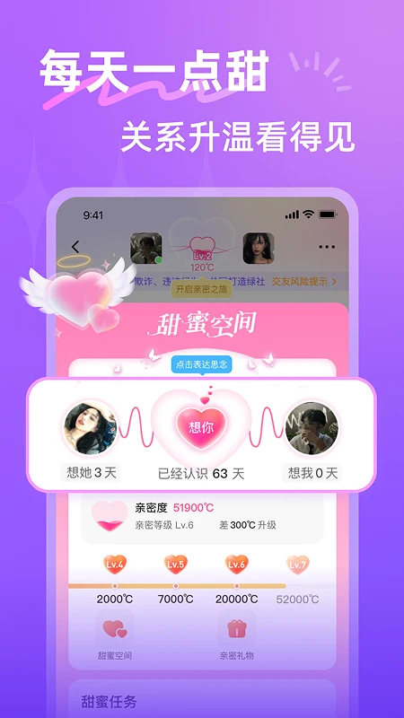 【亲密养成】每日互动积累亲密度,解锁专属二人特权,让感情升温更有仪式感。