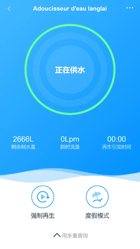 通过该应用可以远程控制家用水处理器设备,可以通过App控制设备的运行、冲洗,以及随时查看设备具体的工作状况。