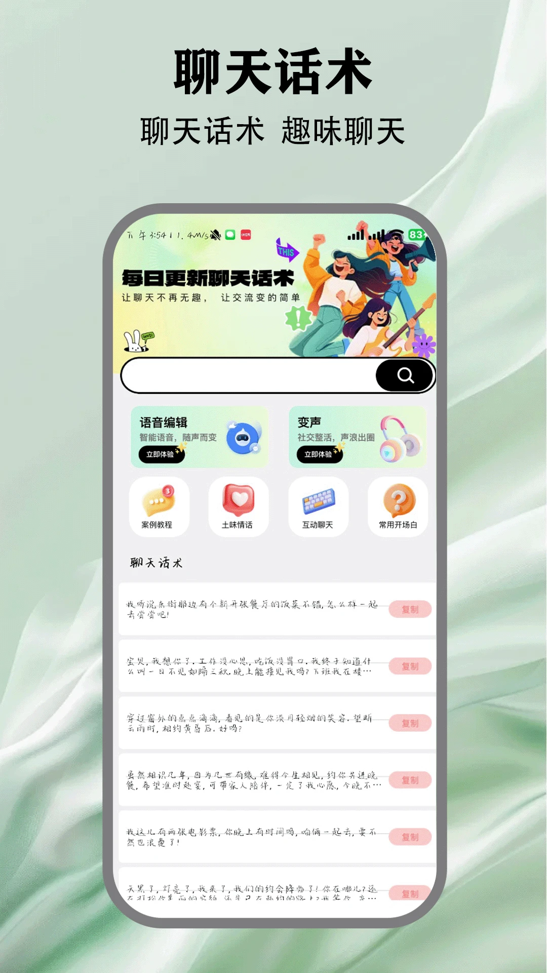 智能推荐聊天话术模板,覆盖社交、职场、恋爱等场景