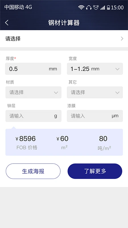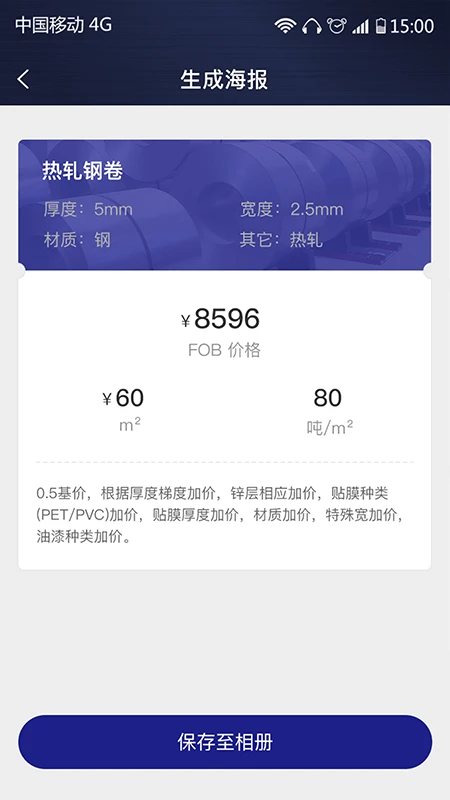 本应用是一款钢材价格核算和钢材报价的软件,能够根据每天的价格波动,向用户提供不同钢铁产品的价格。