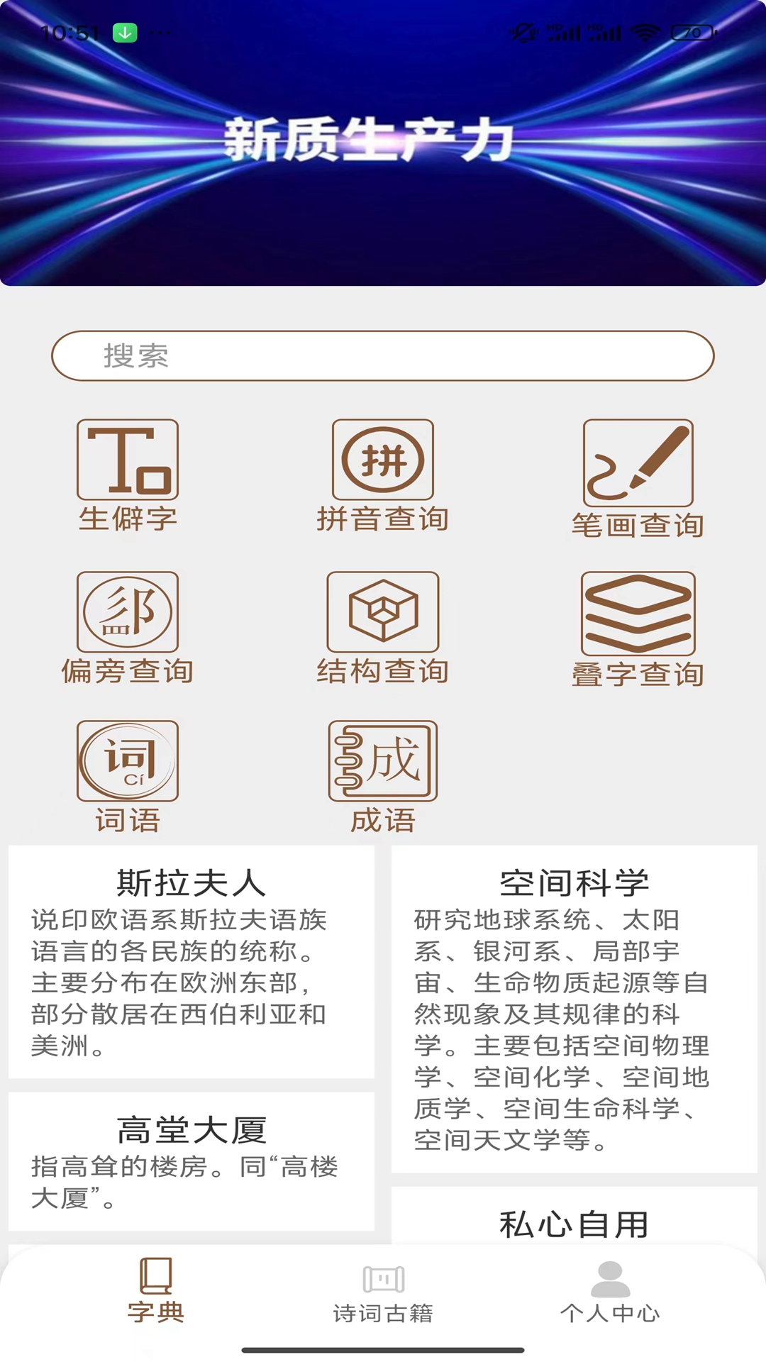 除了单字查询功能外,该平台还整合了丰富的词语和成语学习资源。用户可以查询常见词语的释义、用法示例,了解成语的出处典故和现代应用场景。特别值得一提的是,软件收录了大量经典古诗词和古籍文献,用户不仅能欣赏到优美的诗词作品,还能深入了解古代文学作品的创作背景和思想内涵,为传统文化爱好者提供了宝贵的学习资源。