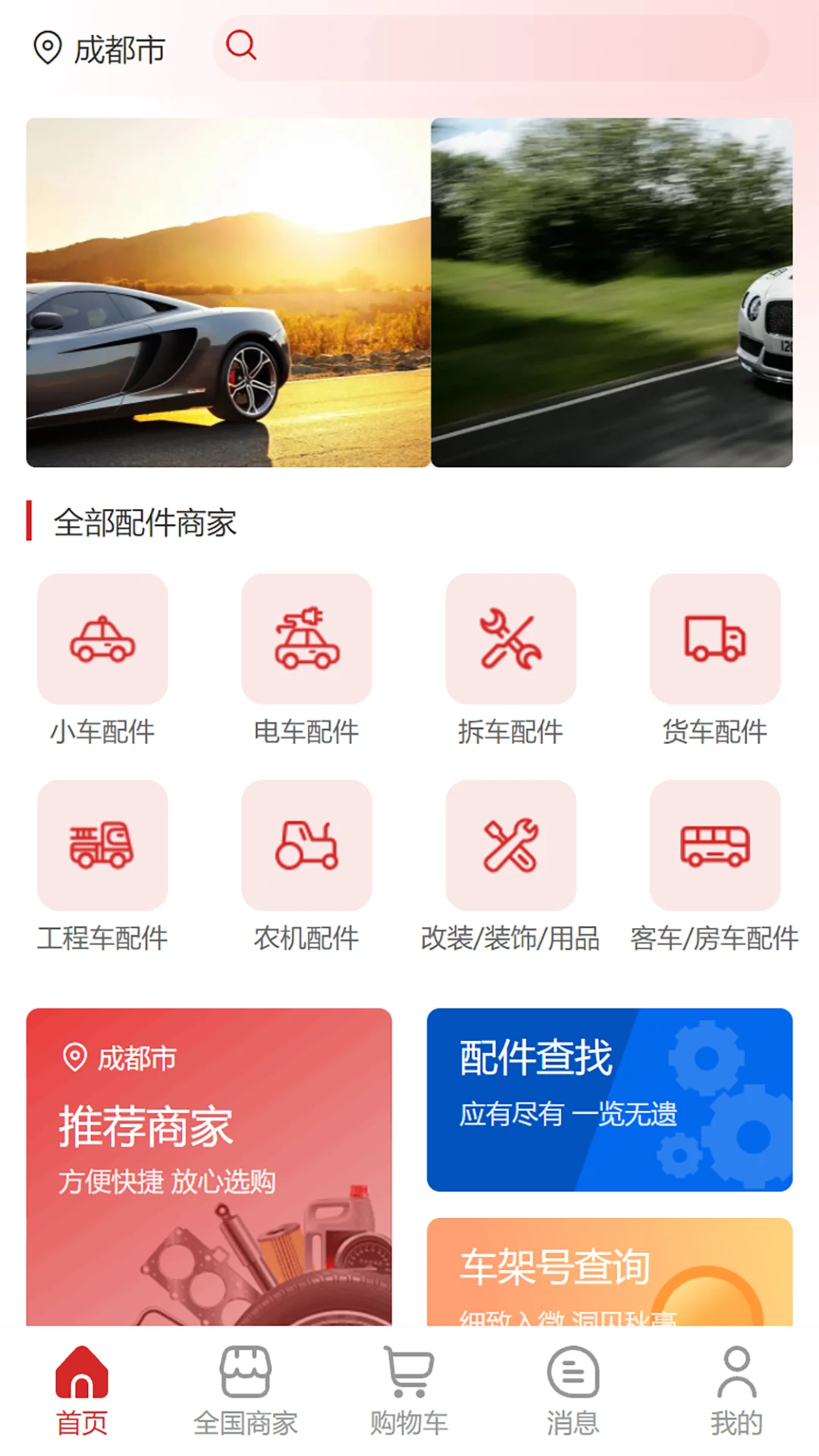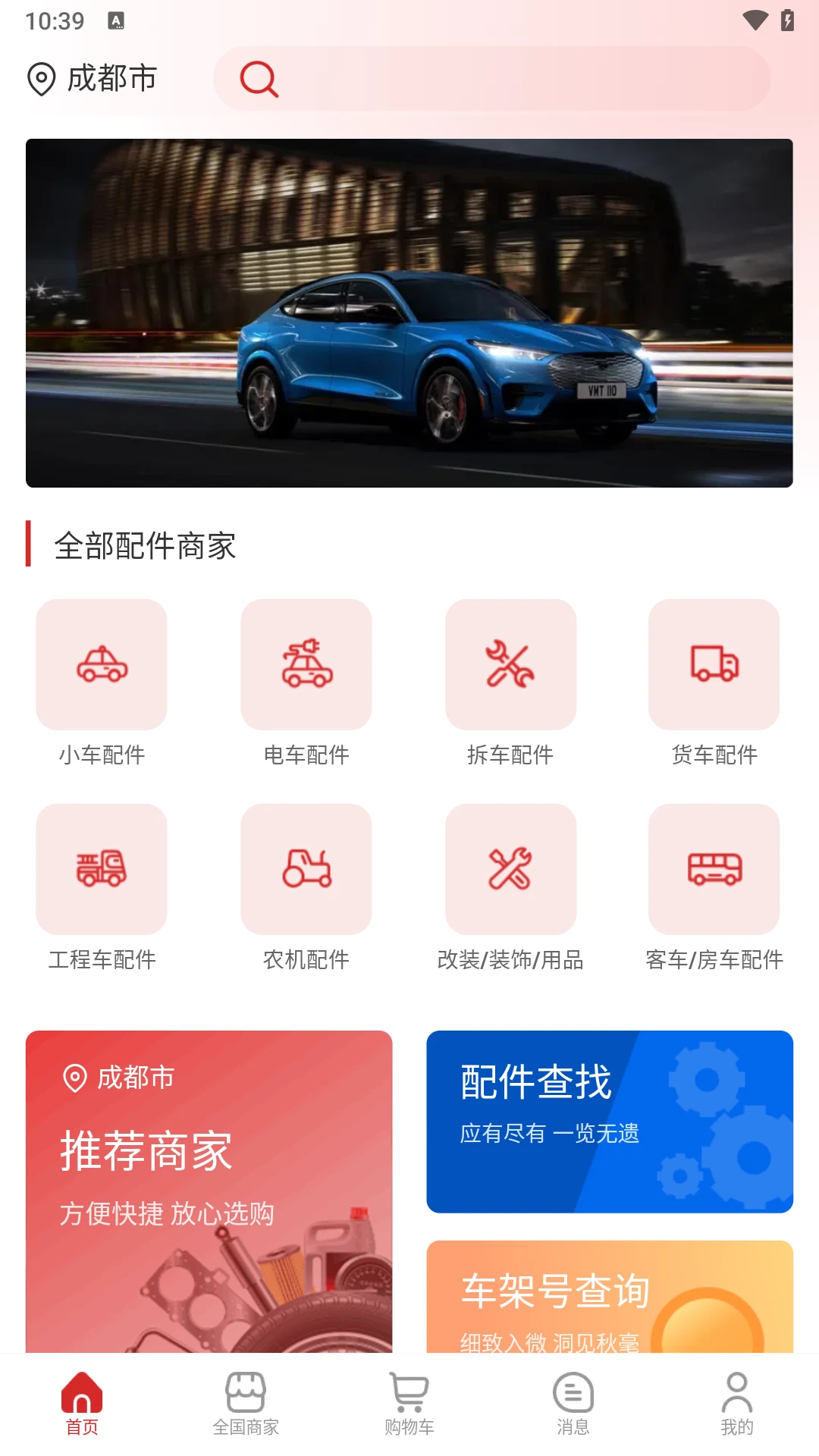 用户端产品浏览功能,支持查看所有商家提供的车辆配件信息。