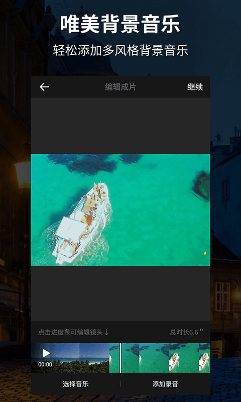 【视频配乐】内置海量正版音乐库,一键添加背景音乐,轻松搞定视频配乐。提供多种风格的音乐选择,从流行歌曲到轻音乐,总有一款适合您的视频氛围。