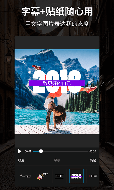 【视频字幕】在视频中添加自定义字幕,精确控制字幕出现时间和持续时间,让文字与画面完美配合,用字幕表达您的独特态度。