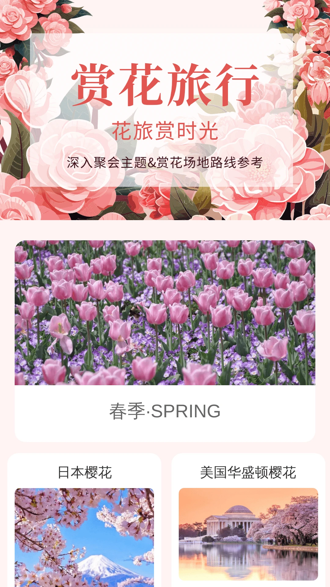 【赏花旅行-花旅赏时光】精心挑选四季赏花旅行目的地,为您提供理想的花卉主题聚会场地,让每一场聚会都成为难忘的时光。