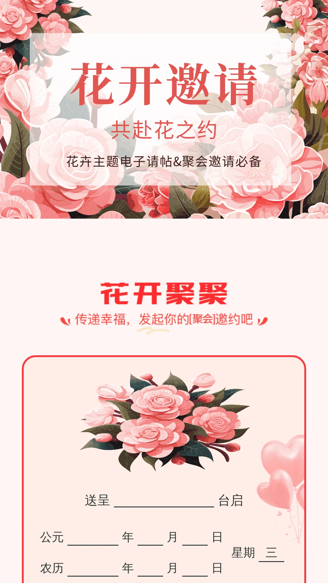 【花开邀请-共赴花之约】轻松制作个性化的花卉主题电子请帖,为您的聚会增添一份特别的仪式感,邀请每一位宾客共赴这场花的盛宴。