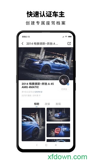 快速认证座驾:简单几步即可完成爱车认证,建立专属的车辆档案,展示您的个性座驾;