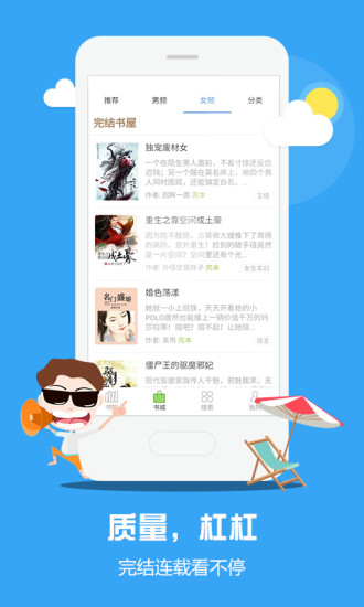 每天实时同步全网最新小说资源,确保你能够第一时间阅读到精品内容。无论是热门连载还是经典完结作品,都能在这里找到。书城中的完结精品小说资源支持缓存下载,方便你随时随地阅读。软件界面设计清晰简洁,排版精致整齐,为你带来优质的小说阅读体验。