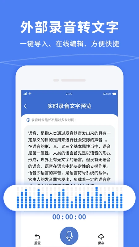 在线录音转文字,准确快速,提高办公或学习效率,方便省心:语音转文字、音频转文字、文字识别、文字提取、语记听写、音频提取等;
