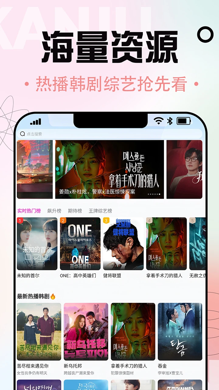 海量韩剧,随心追:热播新剧同步追踪,经典老剧回味无穷,浪漫爱情、悬疑烧脑、家庭伦理...各类题材应有尽有,满足你的追剧瘾!