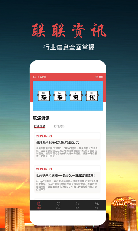 公司介绍,详细展示联联金融的发展历程、业务范围和市场定位;