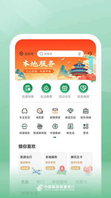 邮储银行是中国邮政储蓄银行倾力打造的智能移动金融服务平台,以科技创新赋能金融生活。这款手机银行应用集账户管理、财富增值、生活服务于一体,通过简洁直观的界面设计,为用户提供全天候的便捷金融服务体验。无论是日常转账汇款、账单查询,还是投资理财、生活缴费,都能通过指尖轻松完成。邮储银行手机银行还特别整合了丰富的本地生活服务场景,让金融服务真正融入用户的日常生活,实现"一部手机,畅享智慧金融"的现代生活方式。