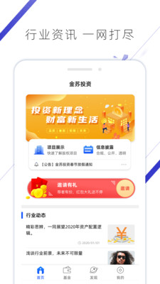 金苏投资app是一款专业的金融投资服务平台,致力于为用户提供全面、及时的市场资讯和投资机会。通过智能化的信息推送和个性化的数据分析,帮助投资者轻松掌握行业动态,精准把握市场脉搏。无论是新手还是资深投资者,都能在这里找到适合自己的投资策略和工具,实现财富增值目标。平台还提供便捷的线上交易功能,让您随时随地管理资产,享受高效、安全的投资体验。