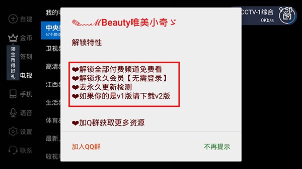 完全免费使用,无需支付高昂的数字电视费用,让您轻松享受海量影视资源。创新的节目源自定义功能,支持用户添加各类特色频道,包括海外优质节目源,满足不同用户的多样化需求。