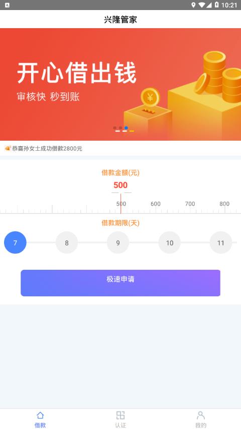 兴隆管家APP是一款专为个人用户打造的智能金融服务软件,致力于为用户提供高效便捷的借款解决方案。通过手机即可轻松完成申请,无需繁琐的抵押流程,最高可享2万元额度,满足您的紧急资金需求。审批速度快至3分钟,资金即时到账,让您不再为借钱烦恼。同时,平台采用多重加密技术,严格保护用户隐私,确保交易安全无忧。无论是短期周转还是长期规划,兴隆管家都能为您提供灵活的还款方案,是您值得信赖的金融助手。