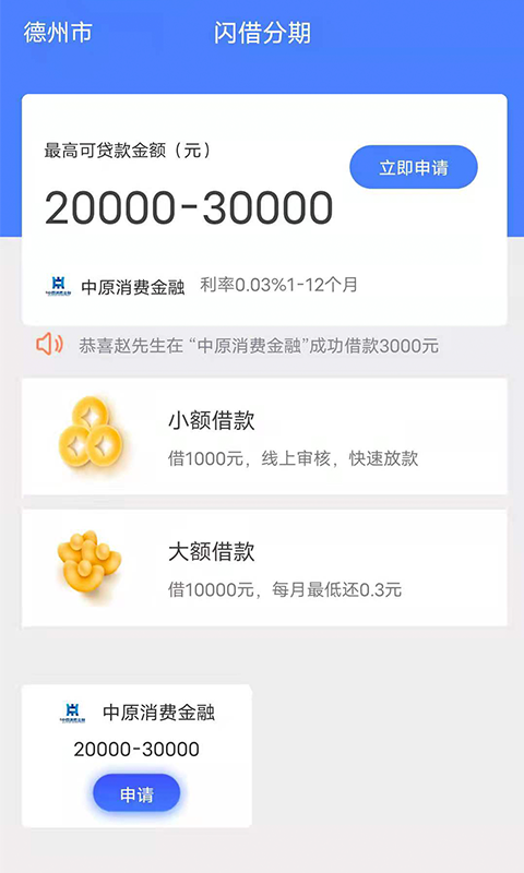 闪借分期是一款专业高效的线上借贷服务平台,致力于为用户提供安全便捷的资金解决方案。平台支持多种额度借款需求,无论是大额资金周转还是小额应急借款,都能快速满足。通过智能风控系统,仅需身份证即可完成认证,简化了传统贷款繁琐的流程。极速审核放款机制确保资金及时到账,解决您的燃眉之急。界面设计简洁直观,操作流程人性化,真正实现"随时随地,轻松借款"的服务理念。