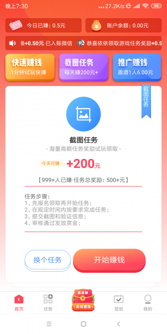 【快速赚钱】提供大量简单易操作的快速任务,如关注公众号、下载应用等,1分钟内即可完成,轻松赚取零花钱。