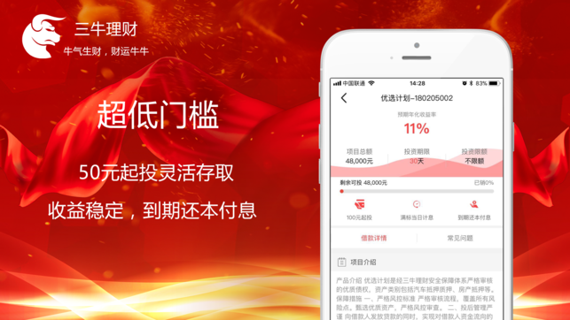 三牛理财是国内领先的智能网贷理财平台,依托云计算、移动支付和大数据等前沿技术,为用户提供专业、便捷的金融服务。平台采用全生命周期风控体系,严格把控每一个环节。自成立以来,三牛理财始终秉持合规透明的运营理念,以用户需求为核心,致力于为中小微经济体解决融资难题,同时为投资者创造稳健收益。