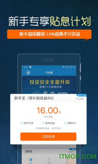 洋钱罐app作为昆仑万维领投的金融理财平台,凭借上市公司背景为用户提供安全可靠的投资环境。平台不仅提供多样化的理财产品,还以高收益率吸引投资者,特别适合有闲置资金的人群进行资产增值。新用户注册即可获得现金红包奖励,让理财更轻松。无论是活期还是定期产品,都能满足不同风险偏好用户的需求。现在就前往IT猫扑下载体验,开启您的财富增值之旅!