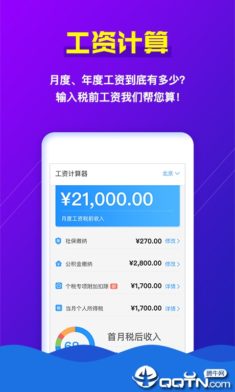 个税助手app下载,这是一款以最新个税政策为基础打造的智能工资计算工具,不仅能够精准计算个人所得税,还集成了社保公积金查询、年终奖计算等多项实用功能。作为专业的财税助手,它能为用户提供清晰直观的数据展示和个性化的税务优化方案,让您的每一笔收入都算得明明白白。