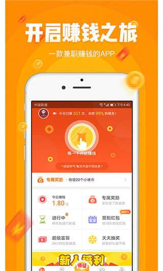 小啄赚钱:通过简单的"啄一下"操作,即可随机获取不同任务,每次都有新惊喜。任务类型丰富多样,满足不同用户喜好,让赚钱过程充满乐趣!