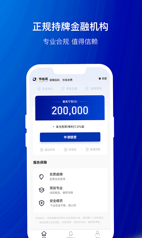 信贷有风险,借款需谨慎。建议您根据实际还款能力合理借贷,避免过度消费导致逾期。平台会根据您的信用状况综合评估,最终授信额度、利率及放款时间以实际审批结果为准。我们提倡理性消费,建议您制定合理的还款计划,保持良好的信用记录。