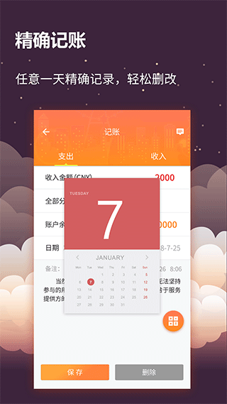 记账提醒:智能提醒功能可设置多个闹钟提醒,支持自定义提醒内容,确保今日事今日毕。特别适合健忘的用户养成良好记账习惯。