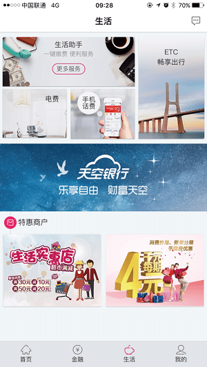 转账缴费:支持行内转账、跨行转账和预约转账,还能在线缴纳水费、电信费等各类生活费用,一站式解决资金往来需求。