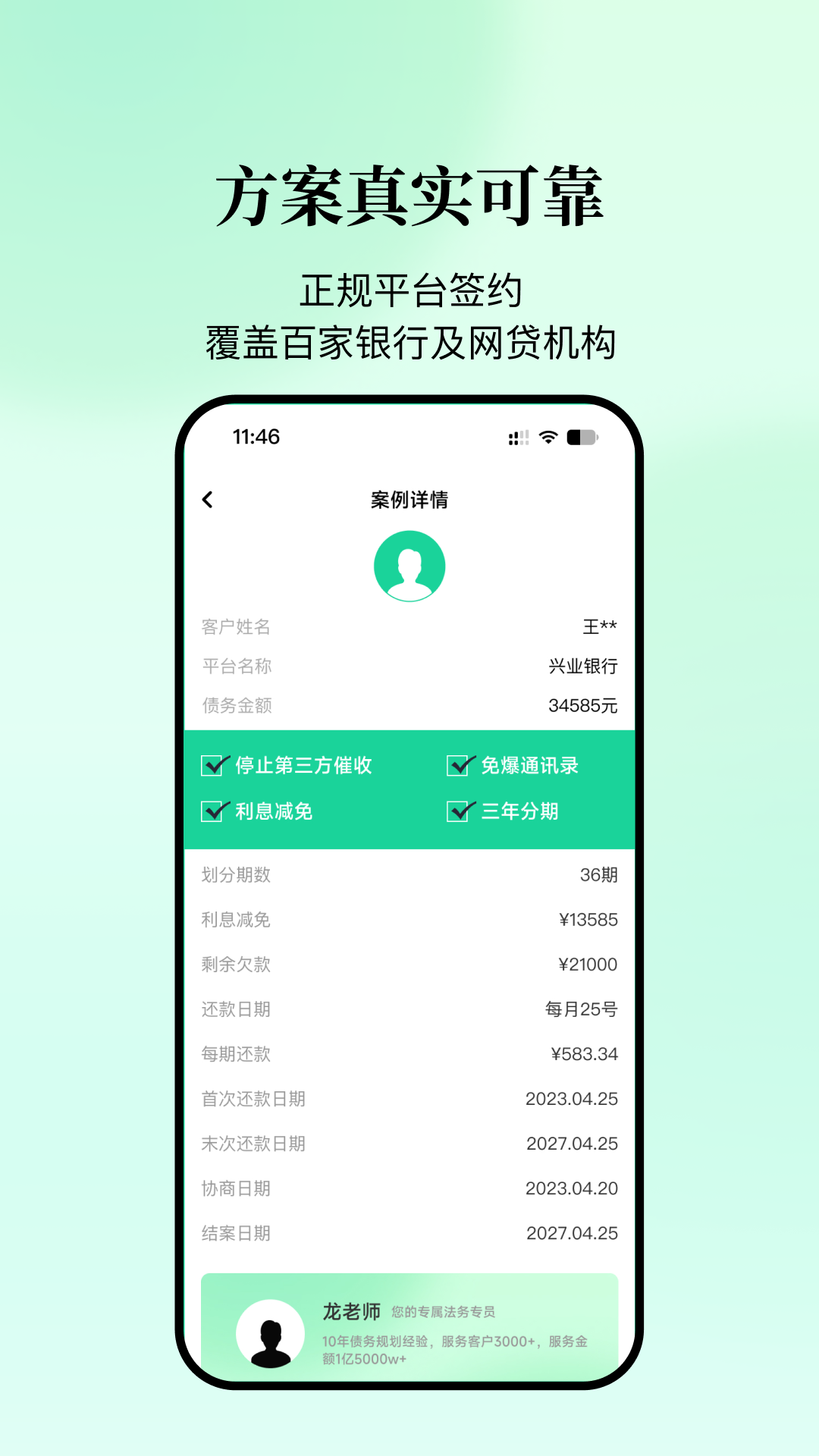 【个性化服务】根据每位用户的实际情况,提供一对一的债务规划建议,确保方案切实可行。