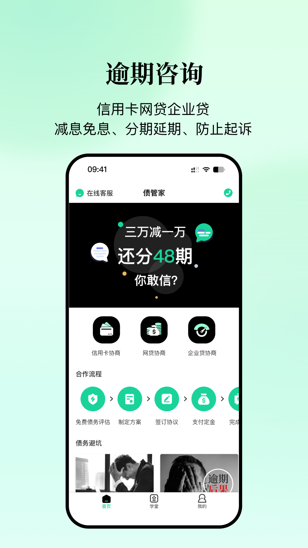 债管家app是一款正规专业的债务逾期规划管理应用,致力于为用户提供全方位的信用卡和网贷逾期协商还款服务。通过债管家app,用户可以轻松管理各类债务问题,合理规划还款方案,有效降低还款压力。无论是信用卡逾期还是网贷还款困难,债管家都能为您提供专业的解决方案,帮助您摆脱债务困境。如果您正面临还款压力,债管家app将是您的最佳选择。