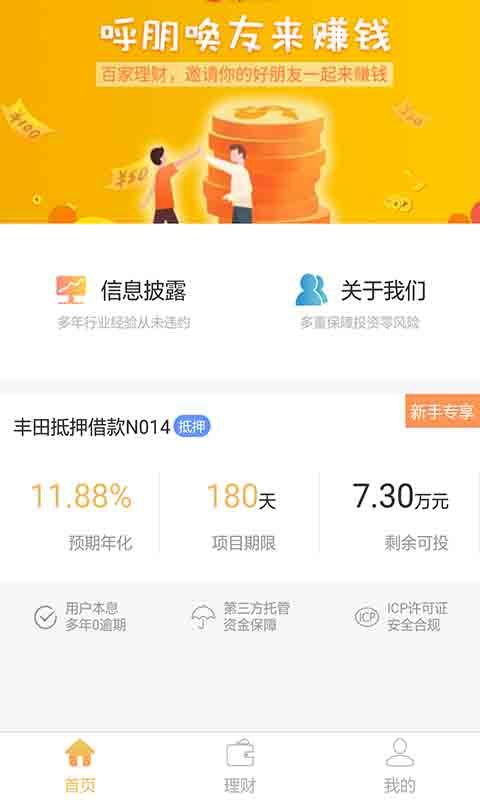 百家理财是一家领先的互联网金融理财平台,凭借强大的技术实力、严谨的风控体系和专业的资产管理团队,为投资者提供全方位的财富管理解决方案。平台产品涵盖货币基金、债券基金、指数基金等多种类型,满足不同风险偏好投资者的需求。