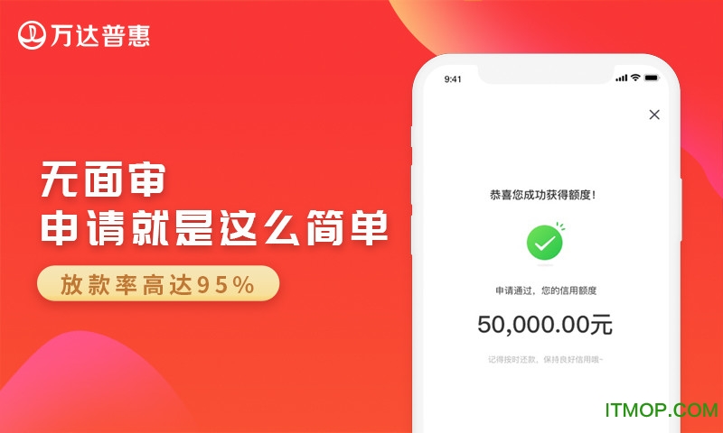 万达普惠最新版本是一款由万达金融集团旗下正规持牌金融机构推出的专业借贷服务平台。作为行业领先的消费金融产品,它以安全可靠、利率优惠、操作便捷等特点在众多贷款平台中脱颖而出。相比同类产品,万达普惠不仅利息更加合理透明,申请门槛也更低,真正实现了"随借随还"的灵活借贷体验,让用户还款无压力,因此深受数百万用户的信赖与喜爱。平台持有网络小额贷款牌照,资金安全有保障,是您急需用钱时的理想选择。