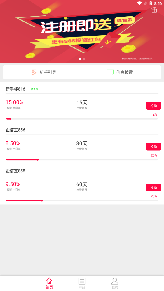 新用户注册即享1716元超值大礼包,包含成长红包和专属加息券