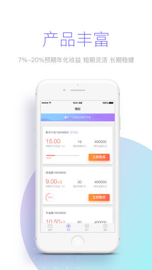 收益优势:年化收益率9%-15%不等,远超银行理财产品收益,且全程交易"0"手续费,让您获得更多实惠;
