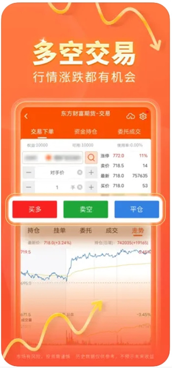 东方财富期货整合了国内外期货市场的最新资讯动态,提供多样化的技术分析工具,用户可自由切换不同指标参数。平台全面覆盖所有期货品种,支持手机端实时交易,交易执行速度快,操作界面简洁明了。系统会根据市场变化及时推送关键信息,结合专业分析帮助用户把握投资时机,通过科学决策实现收益最大化。此外,平台还设有活跃的期货交流社区,用户可与全国投资者分享交易心得,学习实战经验,从而降低投资风险,提升交易水平。