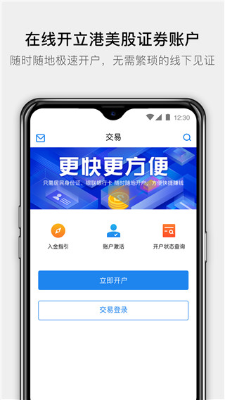 【在线极速开户,无需预约】打破传统开户模式,通过手机APP即可完成港美股证券账户开立,全程线上操作,无需线下认证,让您足不出户就能开启全球投资之旅。