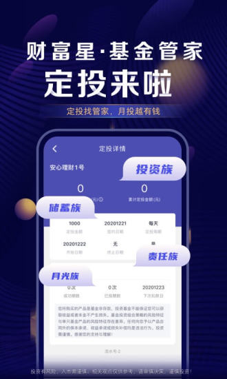 "财富星"服务新增组合诊断功能,可对持仓进行72项健康度检测。基金管家2.0版本实现智能再平衡,1000元起即可配置专业FOF组合。