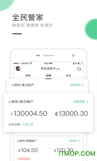 民生全民生活是由民生银行官方精心打造的一款专为信用卡用户服务的移动应用软件,致力于为用户提供全方位的便捷消费体验和智能账单管理服务。这款APP不仅能让用户轻松掌握信用卡使用情况,还能享受丰富多样的生活服务和优惠活动,真正实现"一机在手,生活无忧"的便捷体验。无论是日常消费还是财务管理,民生全民生活都能为您提供贴心周到的服务,快来下载体验吧!