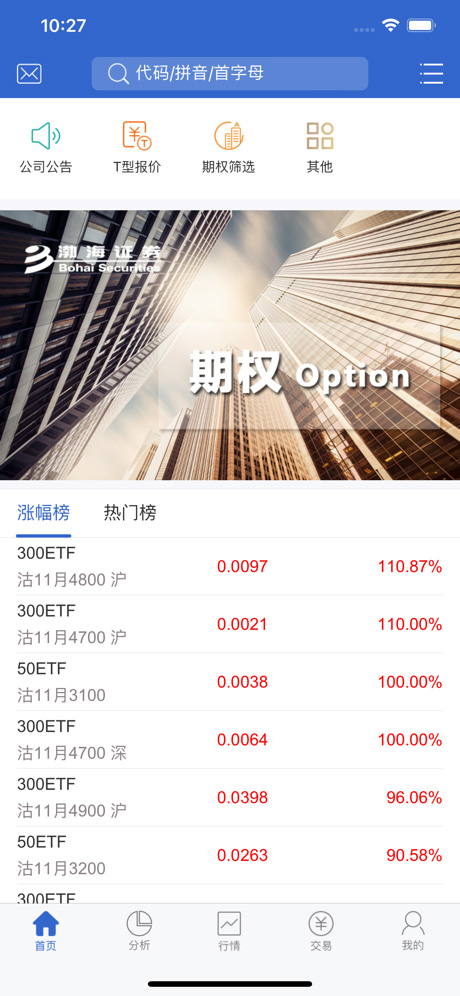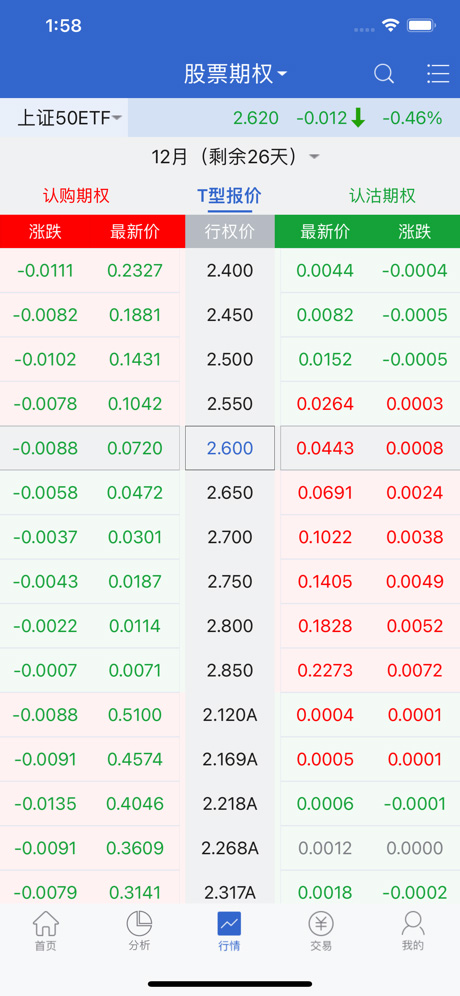 股票期权行情布局调整,优化界面显示效果;