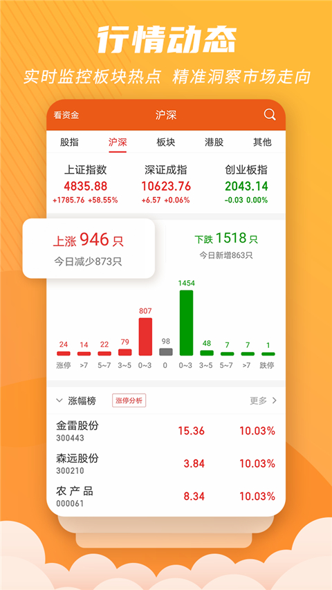 全景行情功能覆盖沪深港三地市场,提供全面、准确的行情数据,帮助投资者及时掌握市场动向,不错过任何投资良机。