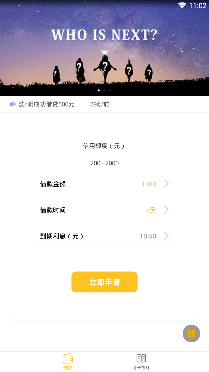快速借钱:采用先进的人工智能审核技术,在线申请流程极简,最快10分钟完成放款,全面解决您的紧急资金需求。系统7×24小时不间断服务,随时随地满足您的借款需求。