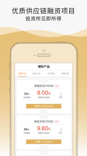 平台提供多样化的投资产品满足不同需求:定期产品预期年化收益率8%-12%,投资期限基于真实账款结算周期设定,通常在3个月以内,既保证了资金流动性又获得较高收益;活期产品预期年化6%以上,支持随存随取,资金使用灵活高效,是短期闲置资金管理的理想选择。