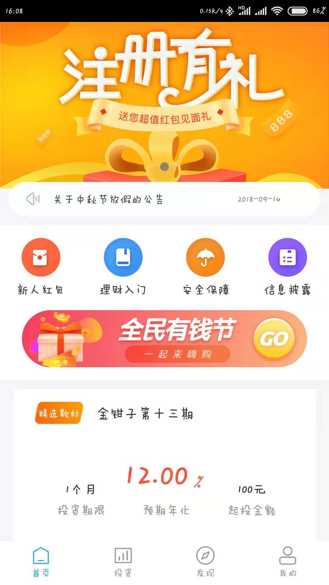 金钳子是一款专业可靠的金融理财类应用程序,致力于为用户提供安全高效的财富管理服务。作为国内领先的互联网金融平台,金钳子自2018年8月上线以来,始终秉持"稳健理财、安全增值"的服务理念,通过智能化的金融科技手段,为用户打造一站式的理财解决方案。