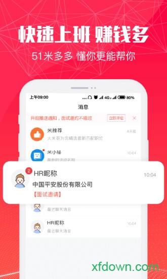 51米多多app是一款专为求职者打造的智能化招聘平台,凭借其人性化的设计和强大的功能,已经成为众多年轻人找工作的首选工具。无论你是刚毕业的大学生,还是想要跳槽的职场人士,51米多多都能为你提供海量真实可靠的优质岗位信息。平台汇聚了众多知名企业的招聘需求,覆盖全国380个城市,让你随时随地都能轻松找到心仪的工作。操作简单便捷,功能丰富实用,快来下载体验,开启你的职业新篇章吧!
