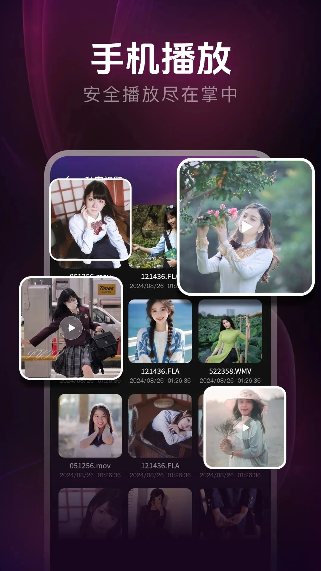 支持所有视频格式并且能够高清播放。增加了视频加密功能。