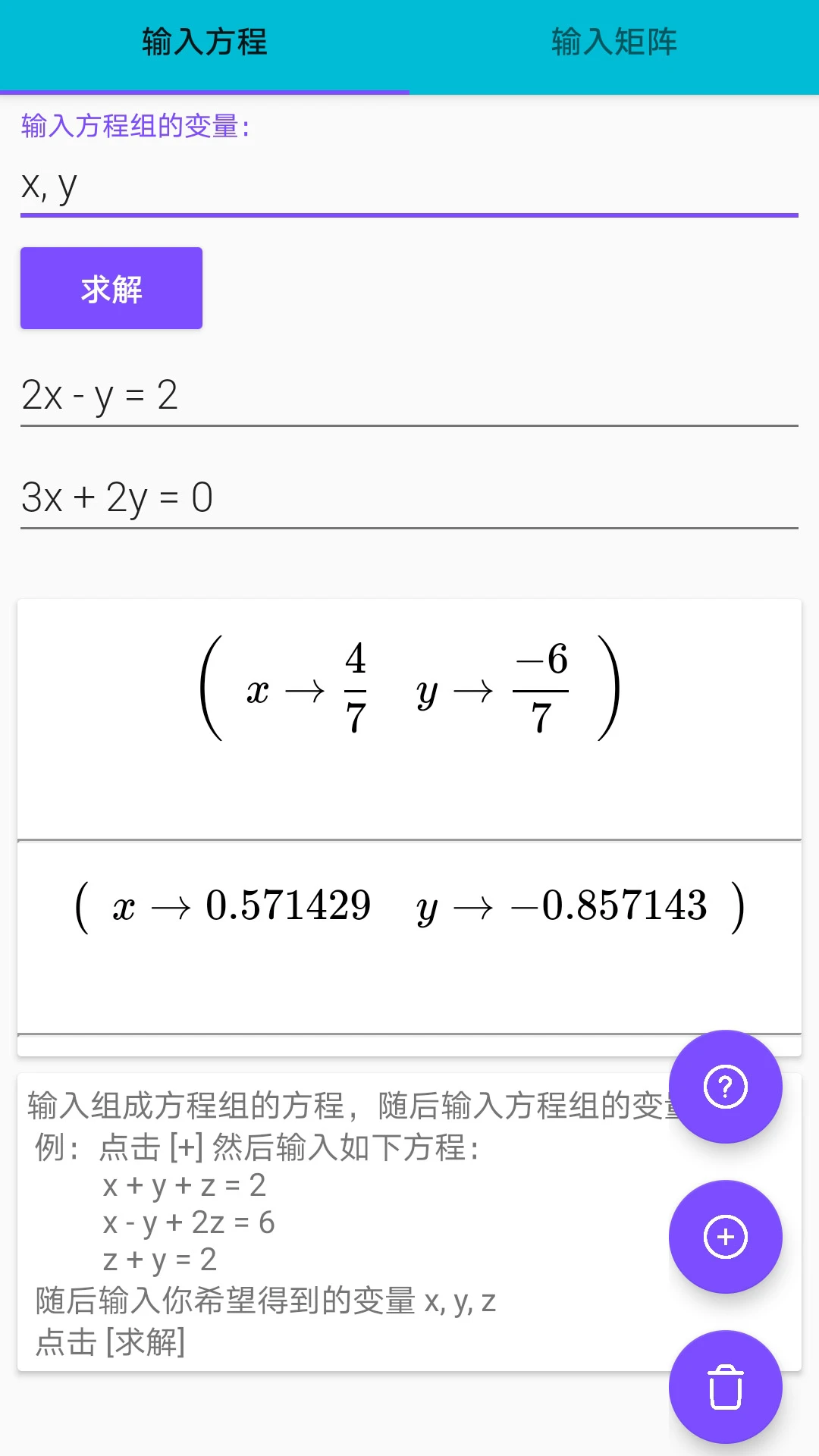 4、方程组求解:可对多变量方程求解,变量个数可自由添加和减少;