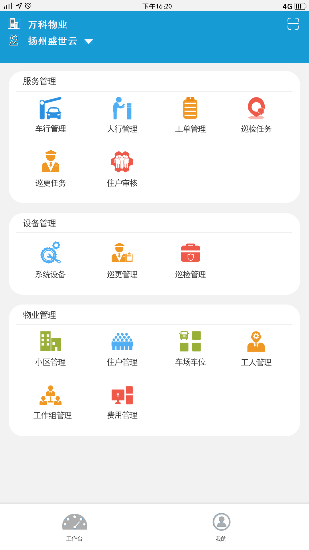 盛世云物业小助手app的工作台集成了多项实用功能模块,包括服务管理、任性管理、工单管理、巡检任务和巡更任务等核心功能。其中住户审核功能可以快速完成业主身份验证,设备管理系统则涵盖了系统设备、巡更管理和巡检管理等多个维度。小区管理模块提供了住户管理、车场车位管理和人工管理等实用工具,而工作组管理和费用管理功能则为物业公司的日常运营提供了专业支持。